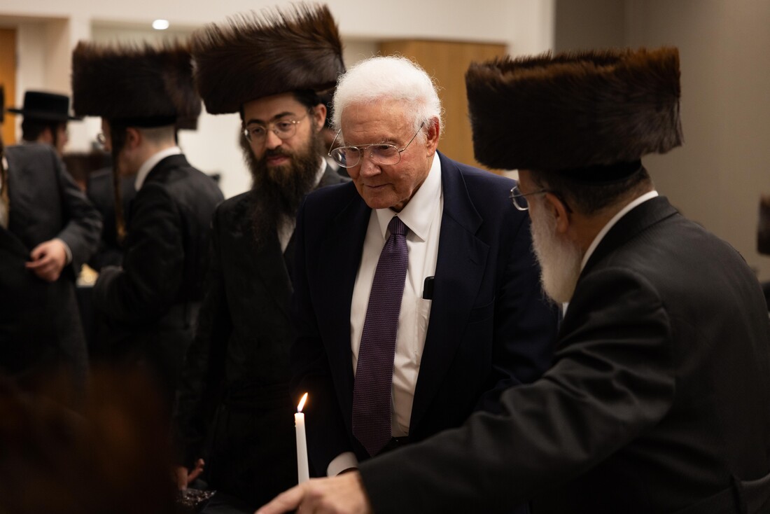 אינעם צווייטן בילד, דער אויבן-אן ביים מעמד, פון רעכטס צו לינקס, הרב שפיר רויזמאן שליט"א רב ד'קהל אור התורה פיניקס אריזאנע, מרן אדמו"ר מא"שוואר - מאנסי שליט"א, הרה"צ הישיש רבי נפתלי לעבאוויטש שליט"א, מרן האב"ד שליט"א, הרה"צ רבי יצחק ראבינוביץ שליט"א רב ד'קהל חסידי באיאן וומסב"ג, כ"ק מרן אדמו"ר מניקלשבורג שליט"א, הרה"ג רבי בן ציון גאלדמאן שליט"א אב"ד ור"י נחלי יוסף ד'נייפעסט.