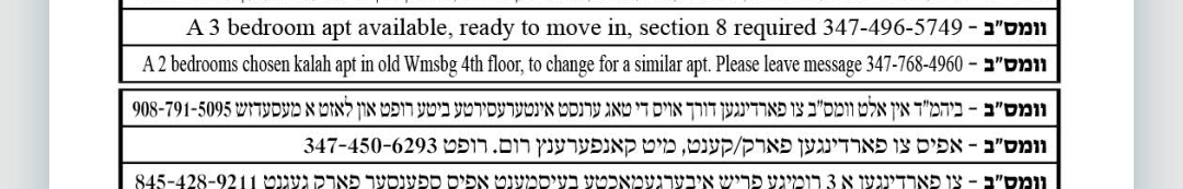 3. און אז סאיז דא צענדליגע עדס וואס זיכן דירות מער וויפעל סאיז דא צו פארדינגען, איך געדענק נישט זייט די דבר יום שטייט אז עס זאל האבן אזויפיל עדס אדער בכלל עדס פון זיכן דירות צו דינגען