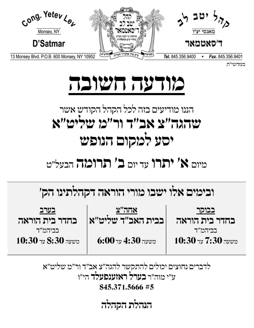 מגבית לטובת בית המדרש דקהלתינו ''ויואל משה''
