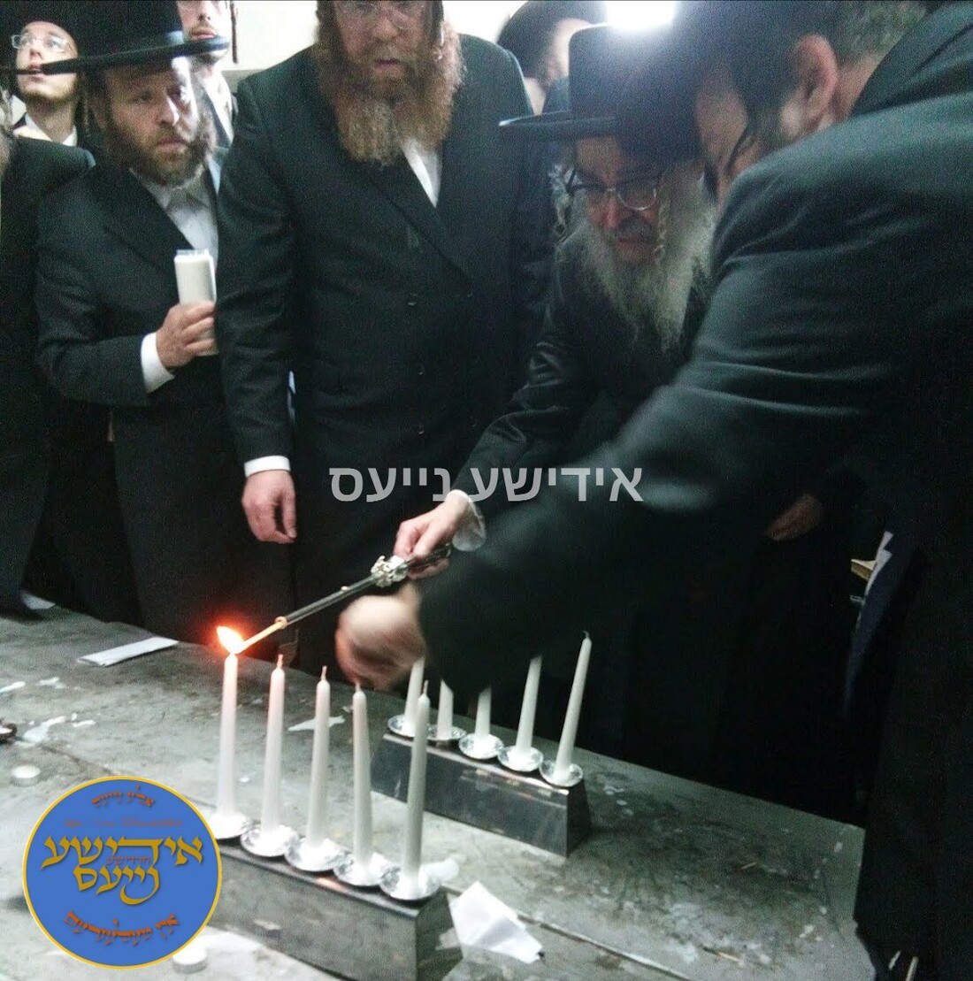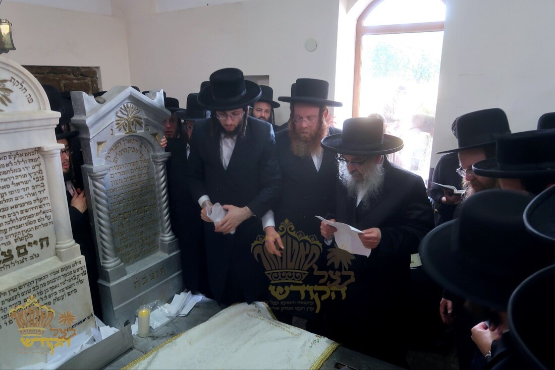 דער רבי איז אריין אינעם אהל בהתעוררות ובפחד גדול און געצינדן פינף לעכט ביי די ציונים פון מרן הגה"ק הייטב לב זי"ע, מרן הגה"ק הקדושת יו"ט זי"ע, און ביי מרן הגה"ק העצי חיים זי"ע, און אויך ביים ציון פון הרה"ק רבי משה יוסף אוהעל'ער זצ"ל,
